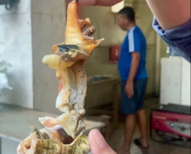 There were many things sold in this market that I saw for the first time in my life. Food products abundant in the island were common, such as fish and cassava.